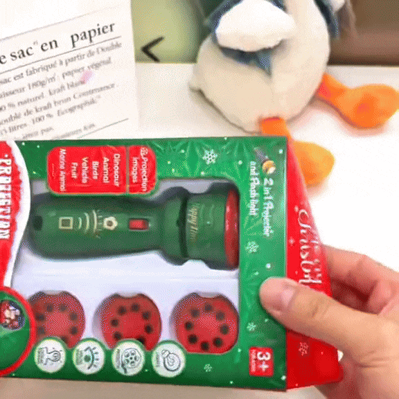 Meet the Kids Projection Flashlight: a simple, fun way to make bedtime special. With slides featuring animals, dinosaurs, and festive holiday themes, kids can project colorful images and explore their creativity. Easy for little hands to use, this flashlight is perfect for bringing a cozy, imaginative touch to the end of the day. Designed for kids aged 3 and up, it's a delightful gift that makes bedtime more exciting!